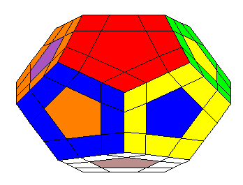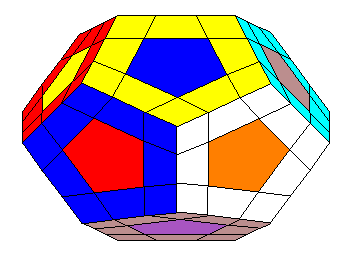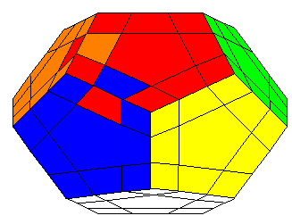 Here L and R refer to opposite sides of the dodecahedron. In this case L and R are not separated by a face, as are the sequences below. Note the centre pieces are rotating in a counter-clockwise direction.
